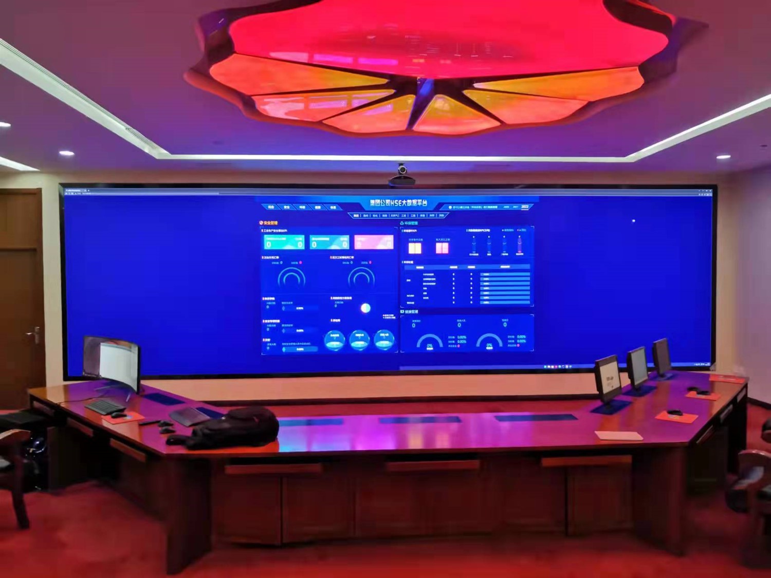 中國石油集團(tuán)安全環(huán)保技術(shù)研究院1層視頻會(huì)議室創(chuàng)新型的運(yùn)用0.93mmLED顯示屏,不僅滿足單位召開視頻會(huì)議室使用,同時(shí)可用于超高分圖像的展示工具,對(duì)研究院研發(fā)團(tuán)隊(duì)成果展示、實(shí)驗(yàn)過程分析提供保障。同時(shí)對(duì)現(xiàn)有視頻會(huì)議功能進(jìn)行升級(jí),由原來模擬、標(biāo)清視頻會(huì)議形式升級(jí)為高清、4K會(huì)議,